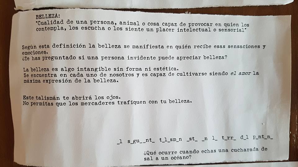 Unas marcas de pintura luminiscente me han llevado al siguiente talismán: BELLEZA