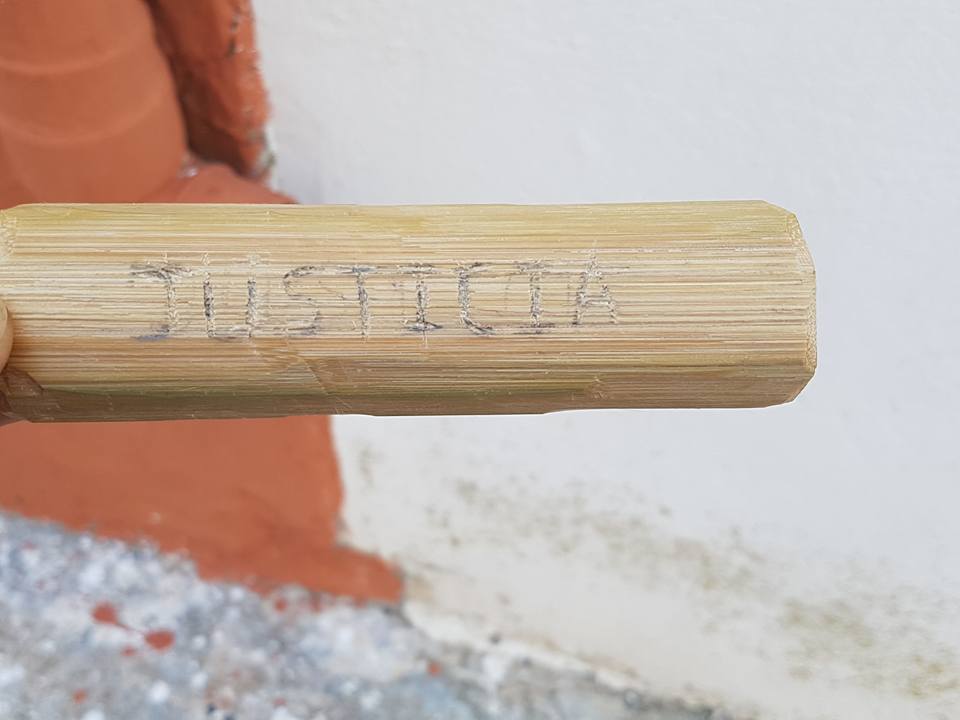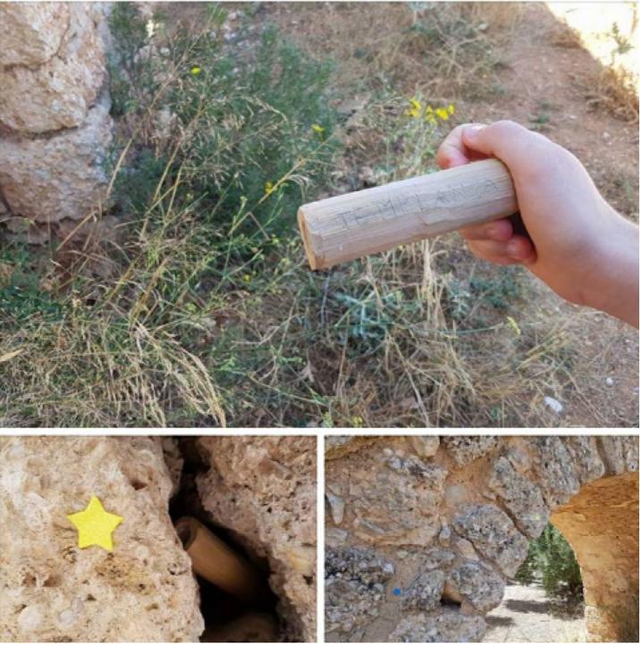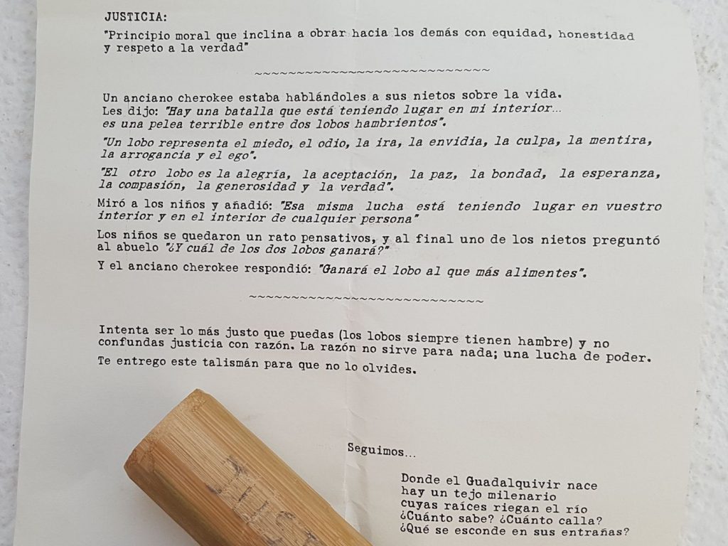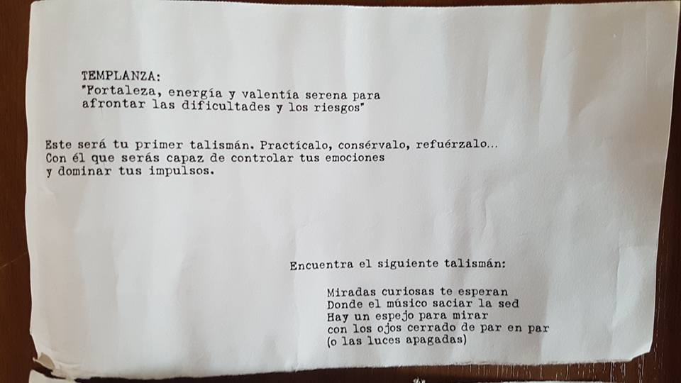 Las estrellas indicaban una grieta en la que he encontrado una especie de palo hueco con una palabra tallada: TEMPLANZA y una nota en su interior.